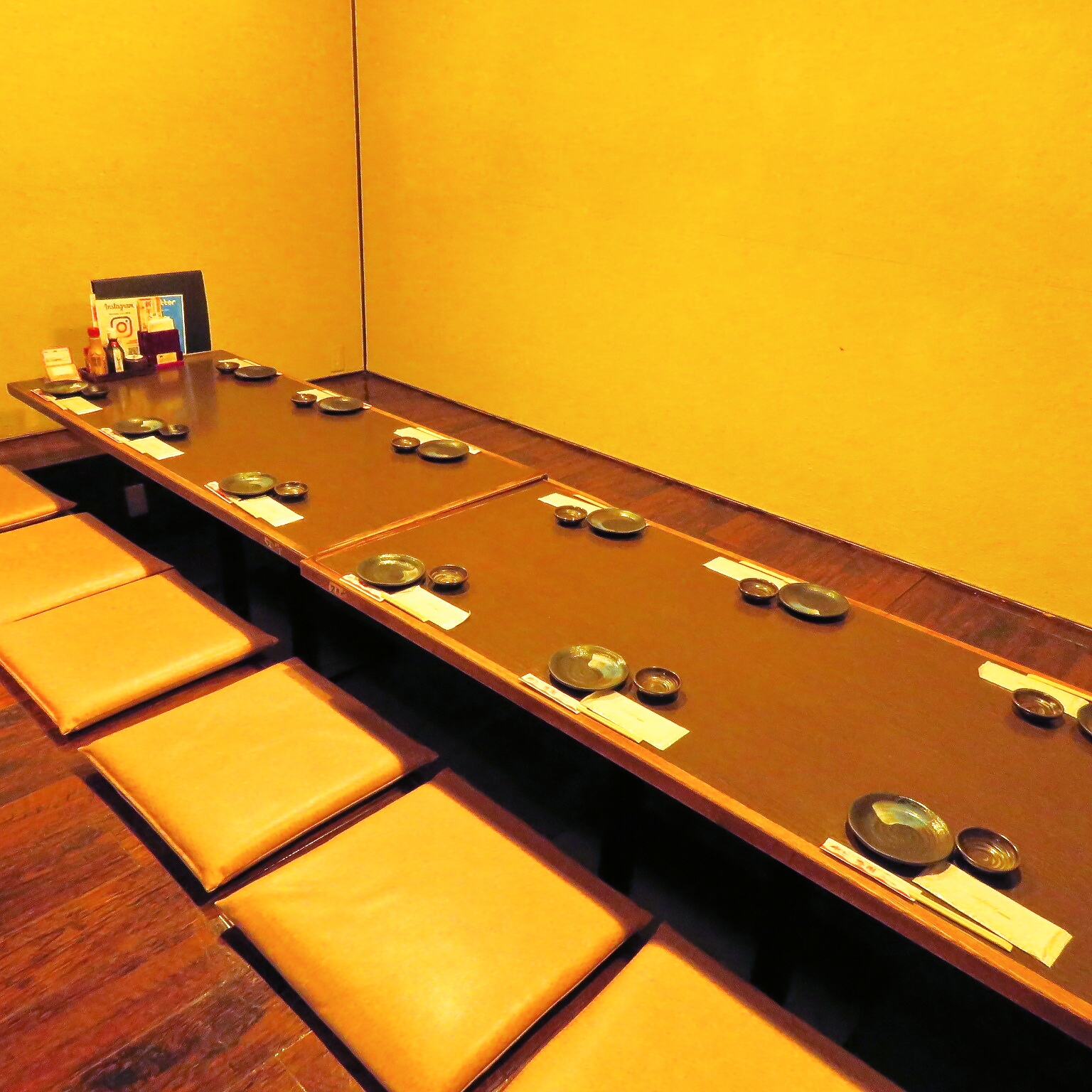 【貸切OK!広々掘りごたつ個室】開放感溢れる掘りごたつ個室も完備しております。最大70名様までご利用可能なので、忘年会・新年会・同窓会等の各種宴会に是非ご利用ください。宴会にピッタリの「横断幕」or「寄せ書き焼酎ボトル」特典付きプレミアムコースもご用意しております!